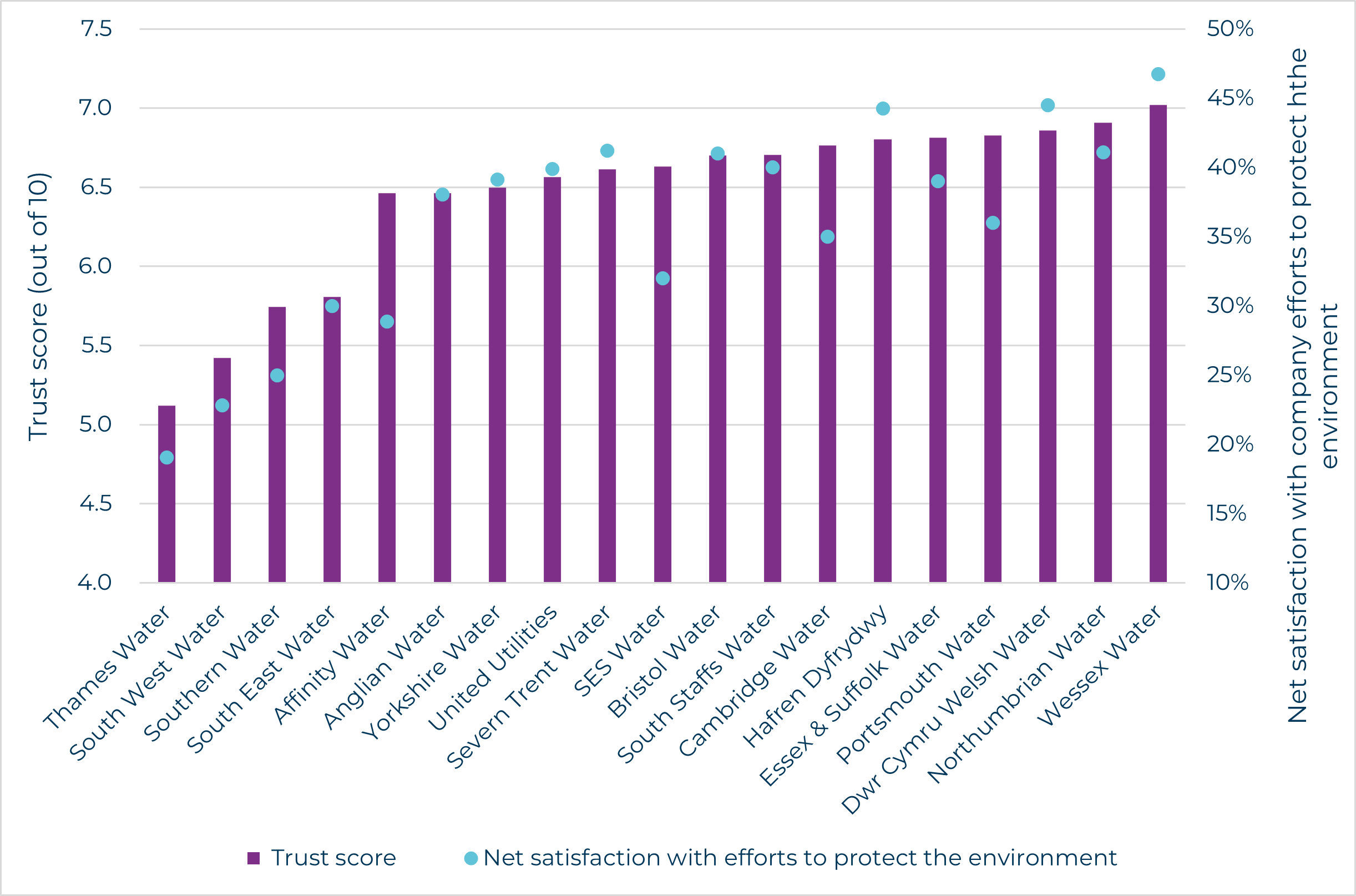 We are seeing at a company level that improving customer perceptions around environmental performance is an important part of the wider process of reversing falling trust scores. While there is clearly further to go to return trust levels to where they have been historically, this is a welcome step in the right direction and we will see in the forthcoming Water Matters survey whether this has continued. In the meantime, we want to see companies being open and honest with their customers about current performance, and to share their plans to make improvements in the areas that we know matter to customers.