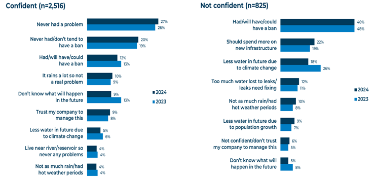 Figure 3: Reasons that customers are confident vs. not confident in long-term availability of their water supply, grouped (2023-24)